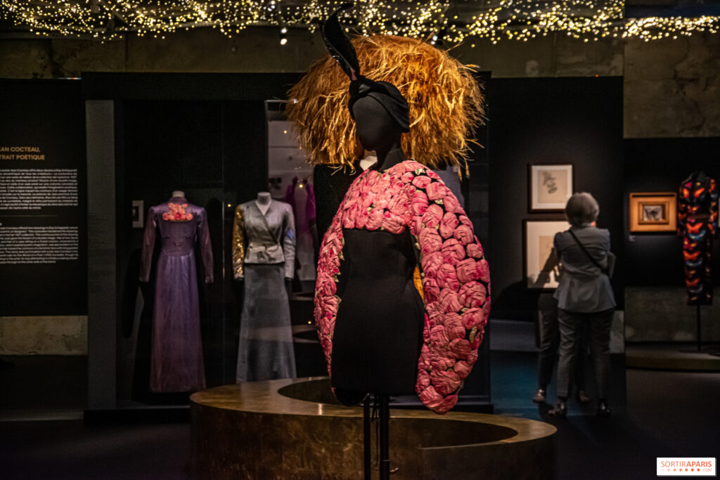 Un’altra collaborazione con Dalí è lo “Skeleton dress”, un abito nero con trapuntatura 3D che ricorda i contorni delle ossa umane. In mostra anche un cappotto da sera con rose di seta rosa, creato da Schiaparelli e dall’artista francese Jean Cocteau, scomparso nel 1963.