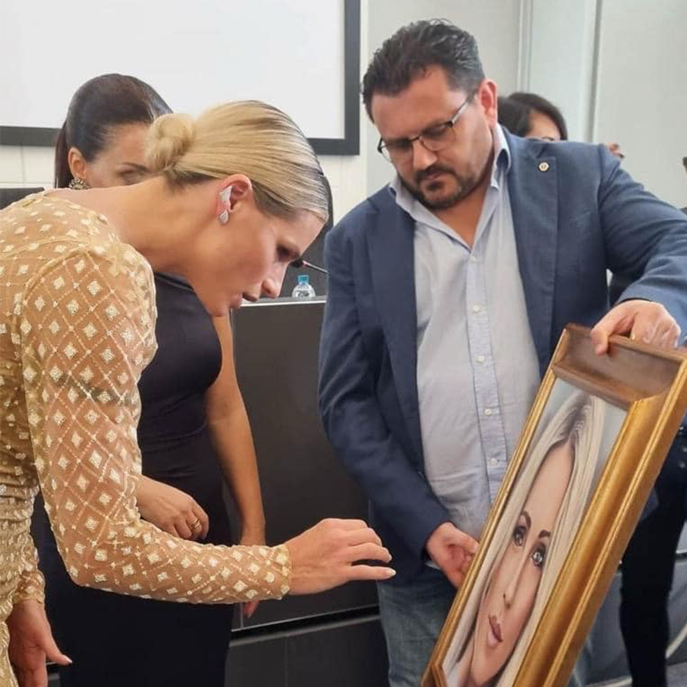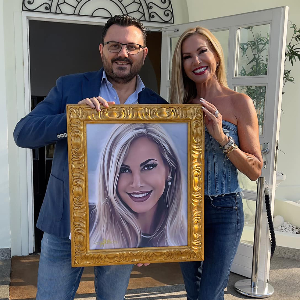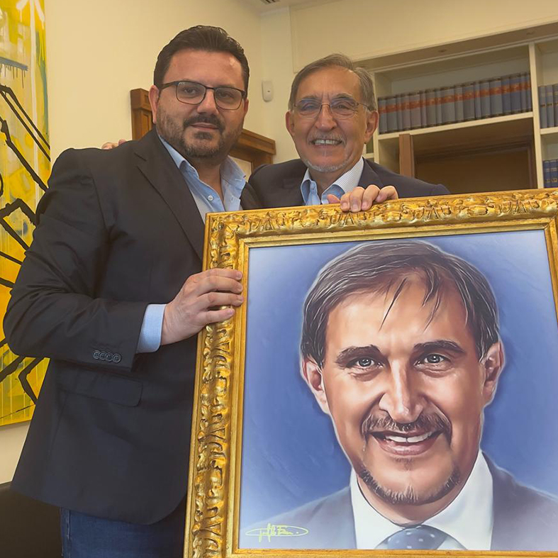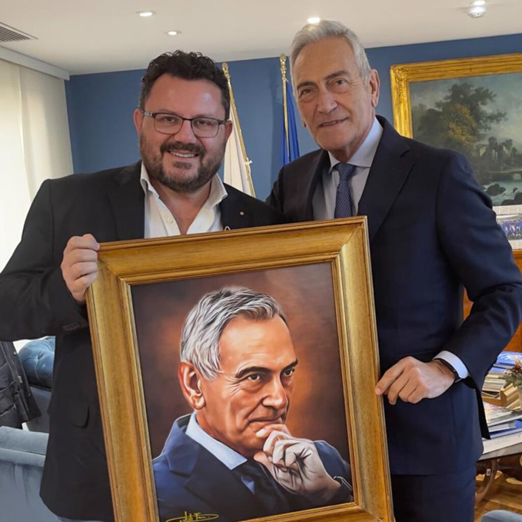 Questo talento si traduce in una serie di ritratti illustri, realizzati e consegnati personalmente a figure di rilievo internazionale come Barack Obama, Sergio Mattarella, Papa Francesco, Papa Benedetto XVI e Gabriele Gravina, opere che trasformano ogni commissione in un momento simbolico di incontro tra arte e istituzioni.