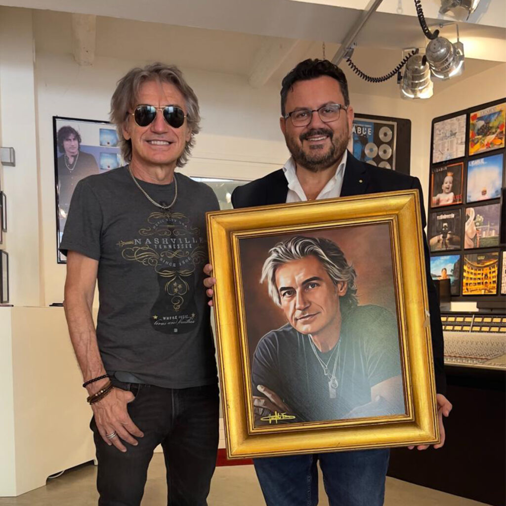 Accanto a queste committenze istituzionali, si collocano i ritratti dedicati a protagonisti del mondo dello spettacolo e della musica come Luciano Ligabue, Eros Ramazzotti e Giusy Ferreri, oltre a numerosi altri volti noti, contribuendo a consolidare quella rete di relazioni che ha dato origine alla definizione di artista dei VIP.